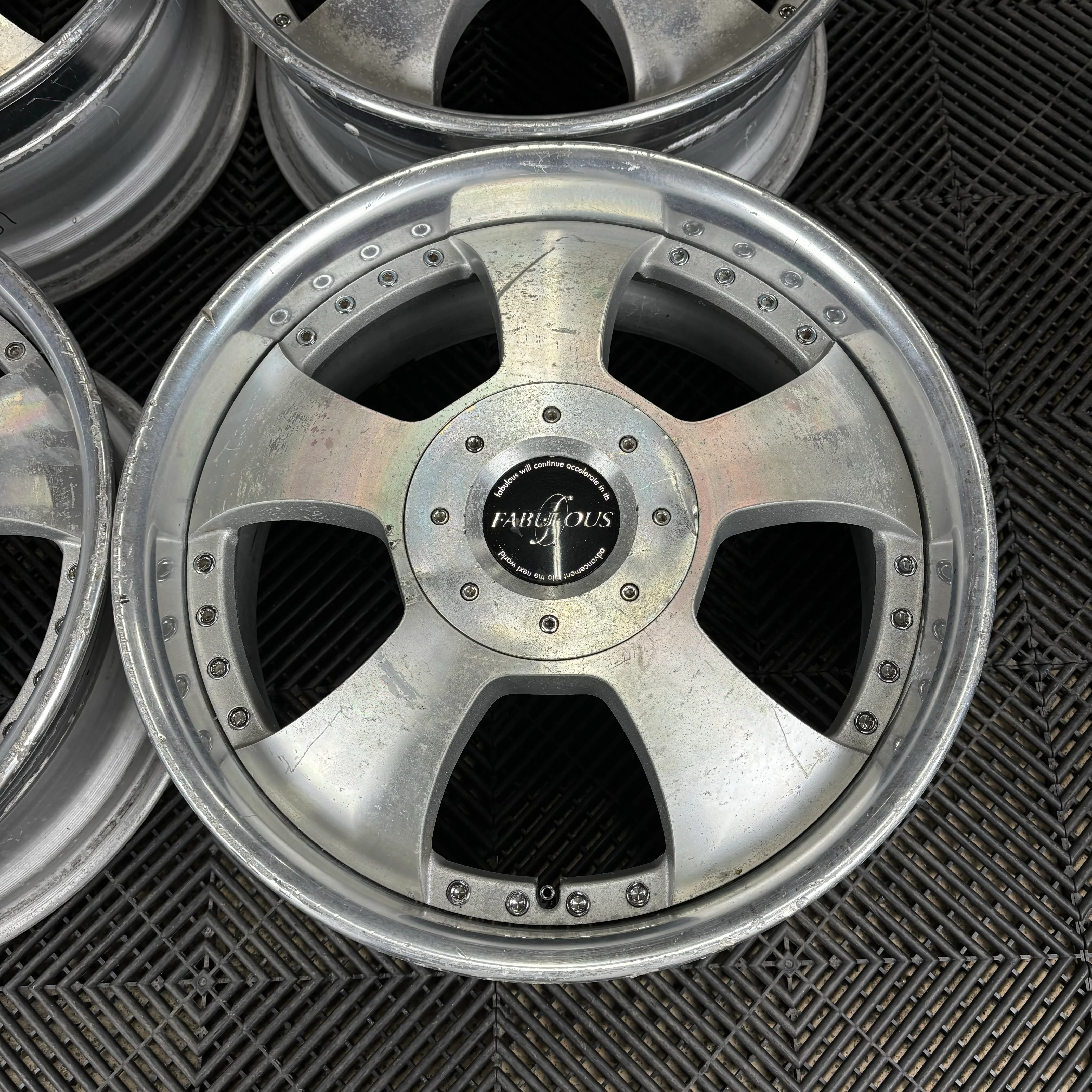 Lips have some scratches and rash.Ā Faces have some scratches and clear flaking.Ā Damage to center caps.Ā Some very very tiny bends |