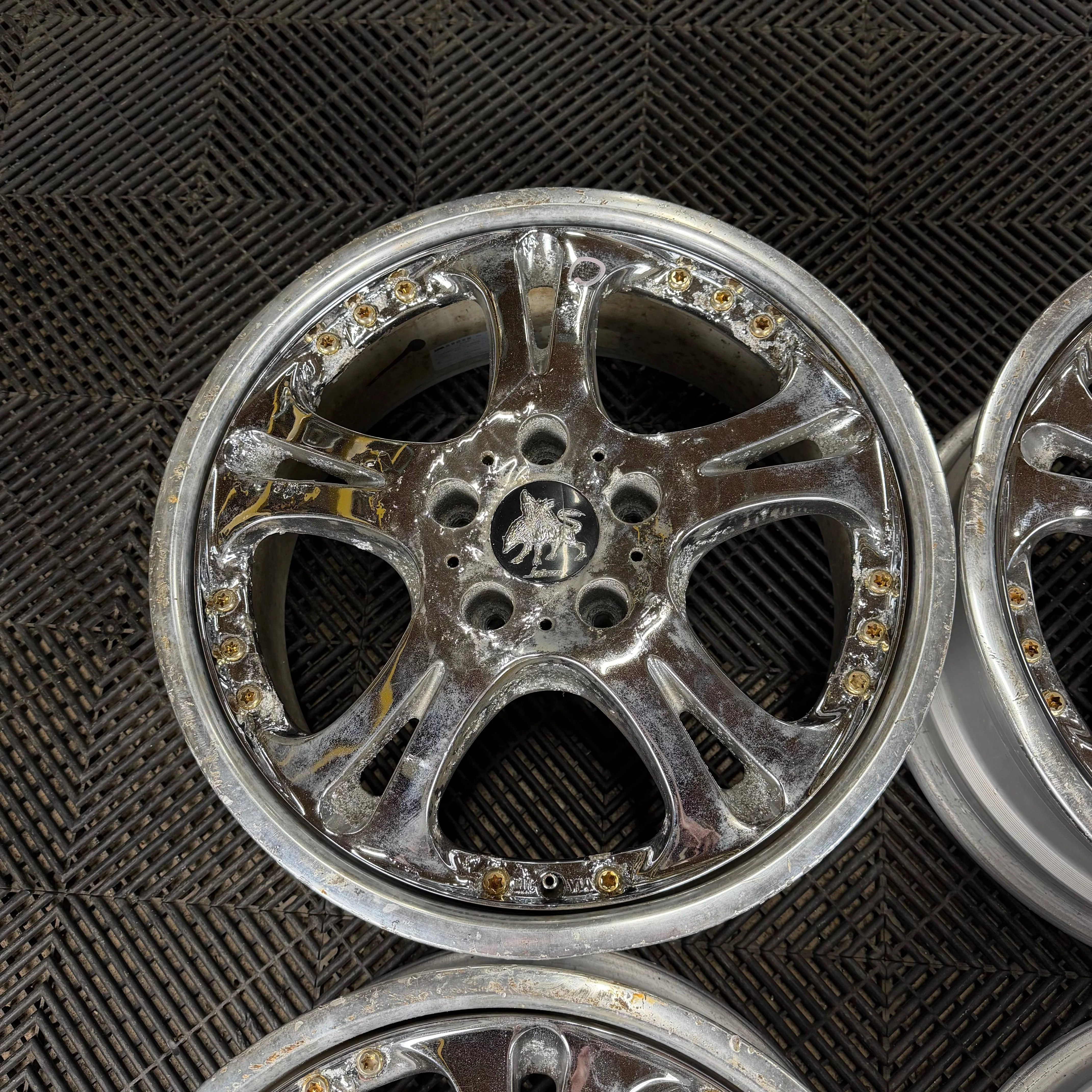 Original Condition, scratches and imperfections, chrome bubbles, curbing, bends in lips (see pics) Please note: We refinish wheels in house! If you'd like us to build to spec, powder coat or chrome plate we do it all! Send us an email at [email protected] with the link to the wheels and desired specs/ finishes and we will send you a quote! |